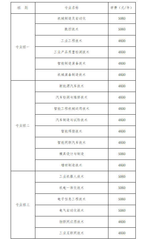 学校2026年单招招生专业按专业组划分,为3200元/年,包含工业机械人手艺、机电一体化手艺、电子消息工程手艺、电气从动化手艺、物联网使用手艺、工业互联网手艺6个专业,